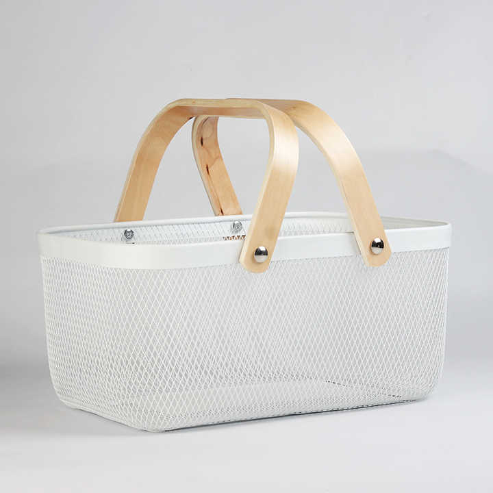 Introducing our Rectangle Wire Mesh Storage Basket with Double Wooden Handles! This adaptable basket is here to cater to all your organization needs. Be it on your desk, storing fruits, or keeping magazines and toys neat, this basket has you covered. Easily customize your storage to suit your home's vibe.