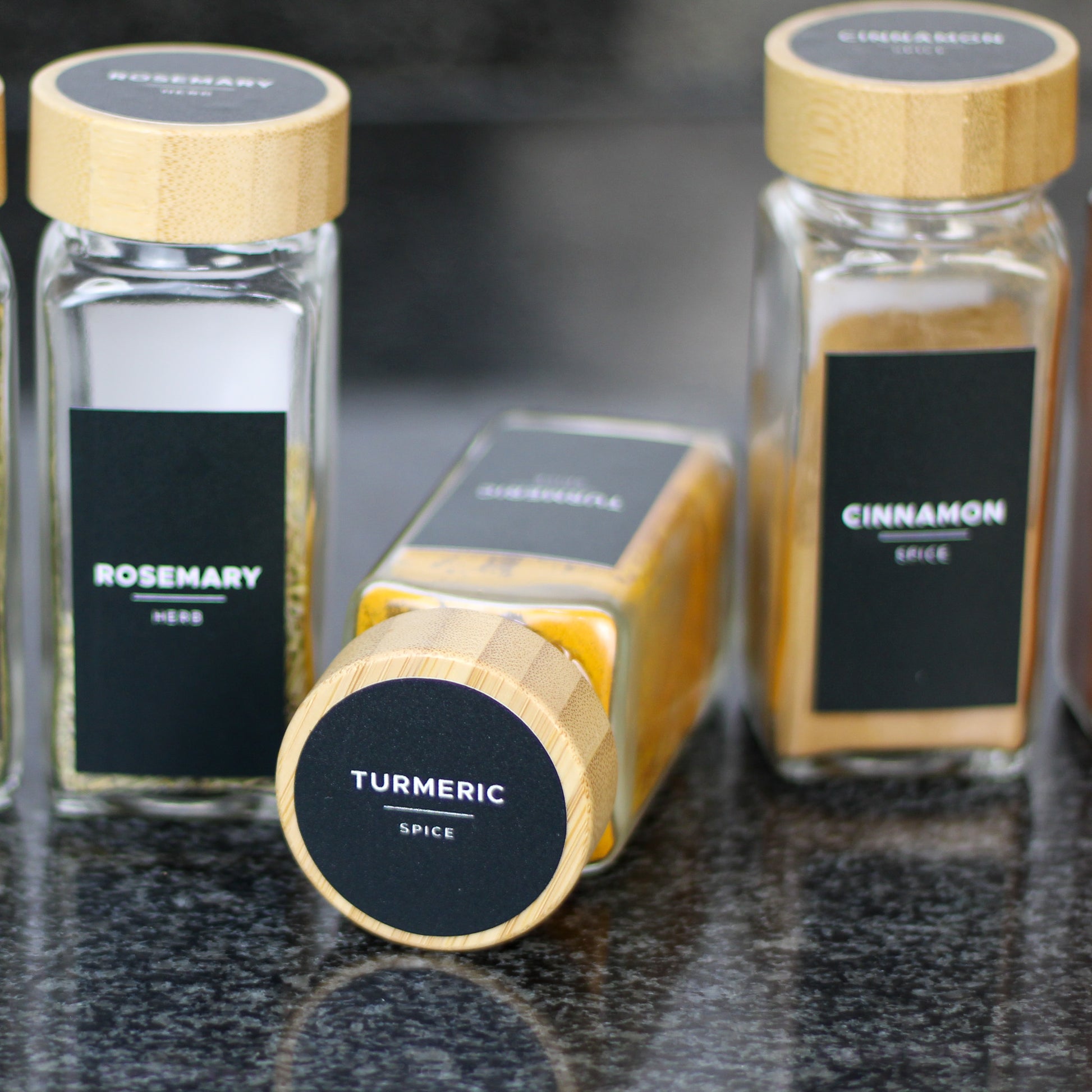 These labels are ideal for organizing your spices in pull-out drawers. Simply apply the label on top of the lid for easy recognition and quick access to your desired spice. The 4cm size is a perfect fit for our 120ml spice bottles with a bamboo lid.
