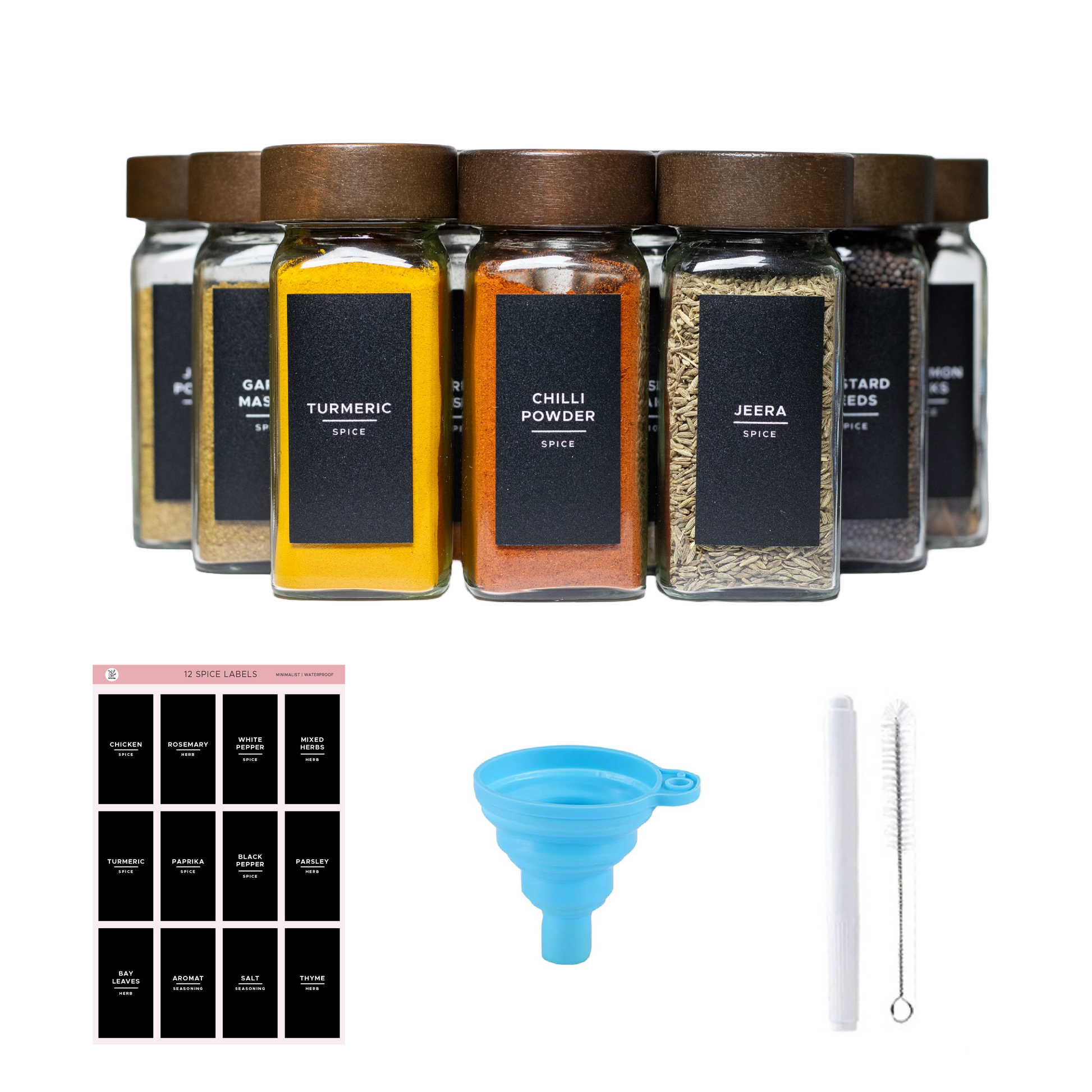 ✅ Complete Set – 12 jars, labels, funnel, and cleaning brush included.