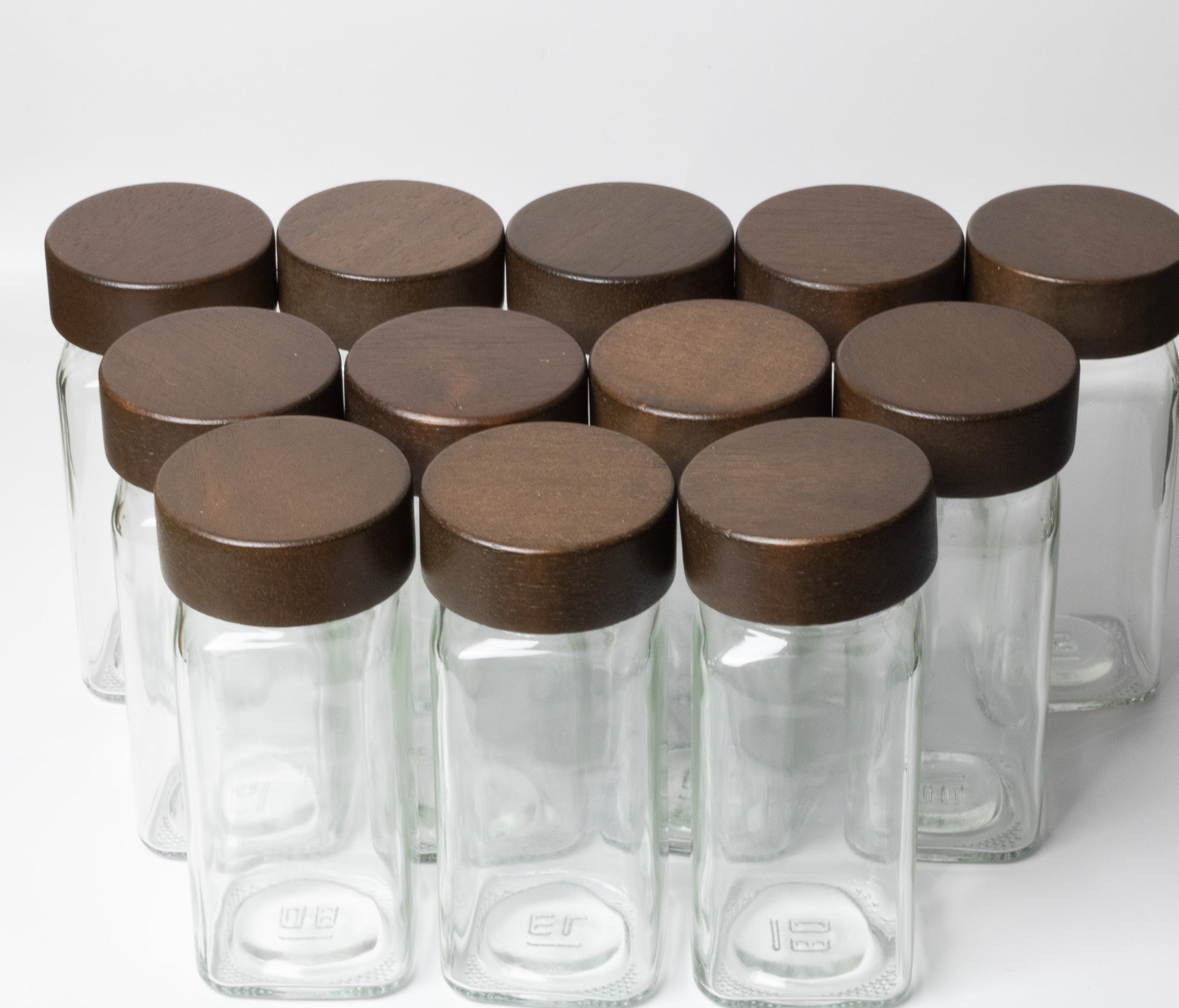 Declutter your spice cupboard and transform it into a minimalist, stylish and organised space with these beautiful glass spice jars. With their sleek design and airtight walnut lids, your spices stay fresh while your kitchen looks effortlessly chic.