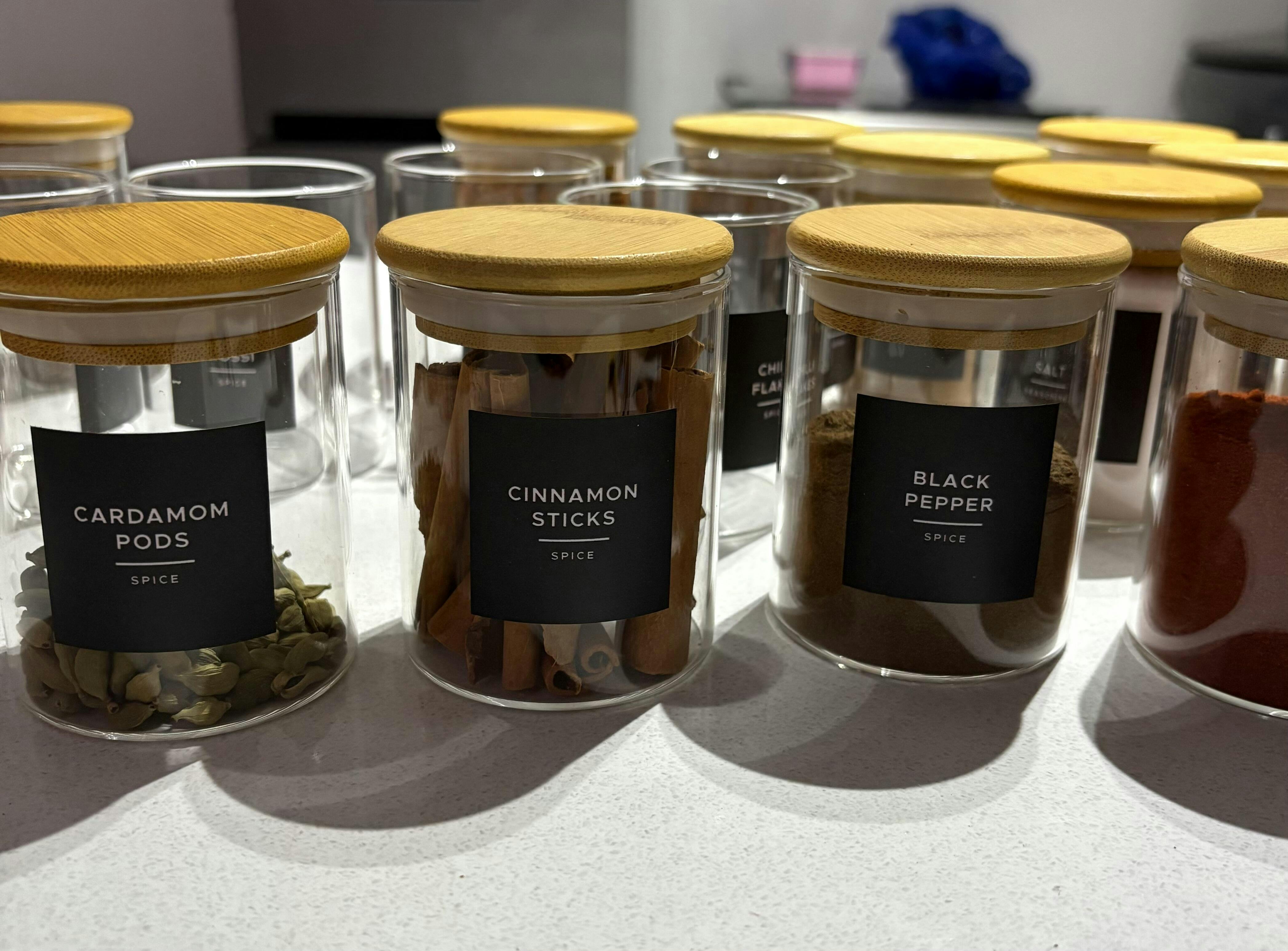 Transform your spice jars into a beautiful and organised display with our minimalist 4x4cm square spice labels.