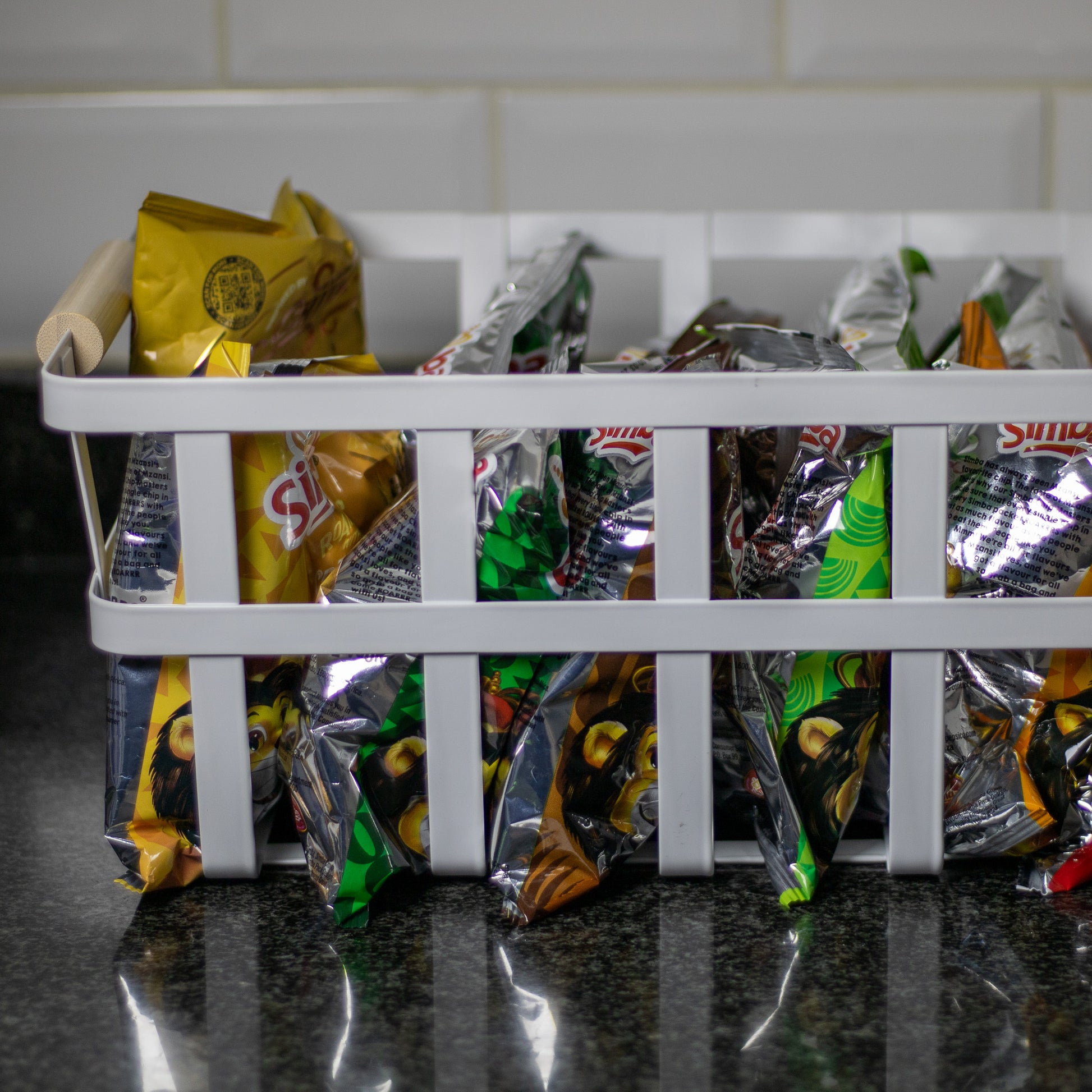 1 x White powder-coated metal Storage Basket with handle
